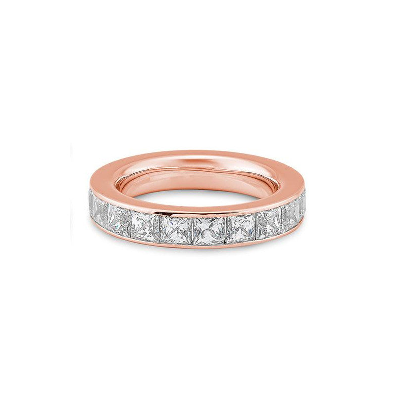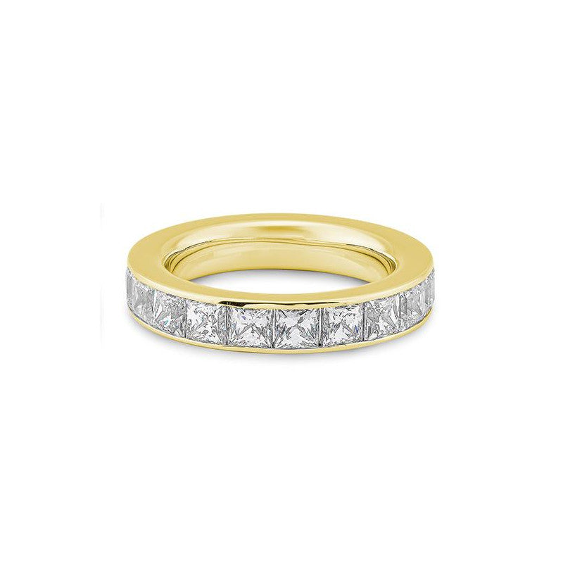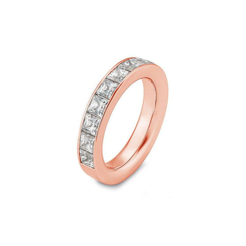Der Halbmemoire Carree Diamantring vereint zeitlose Eleganz mit moderner Nachhaltigkeit. Gefertigt aus hochwertigem 14 Karat (585) oder 18 Karat (750) Gold, erhältlich in Weissgold, Gelbgold oder Roségold, überzeugt dieser Ring mit seinem klaren Design und edler Ausstrahlung. 13 funkelnde Labordiamanten im Carree-Schliff mit insgesamt 2.08 Karat zieren rund 60 Prozent der Ringschiene und sorgen für ein beeindruckendes, gleichmässiges Funkeln. Die Diamanten in feinem Weiss (Top Wesselton) besitzen eine Reinheit von VS und zeichnen sich durch eine sehr gute Schliffqualität aus. Dank der präzisen Verarbeitung mit einer Breite von etwa 4.10 mm und einer Höhe von ca. 2.50 mm liegt der Ring angenehm am Finger und eignet sich perfekt als stilvolles Schmuckstück für besondere Anlässe oder als exklusiver Verlobungsring. Die Verwendung von lab grown Diamanten steht für bewussten Luxus ohne Kompromisse. Die Lieferzeit beträgt ca. 2 bis 3 Wochen.