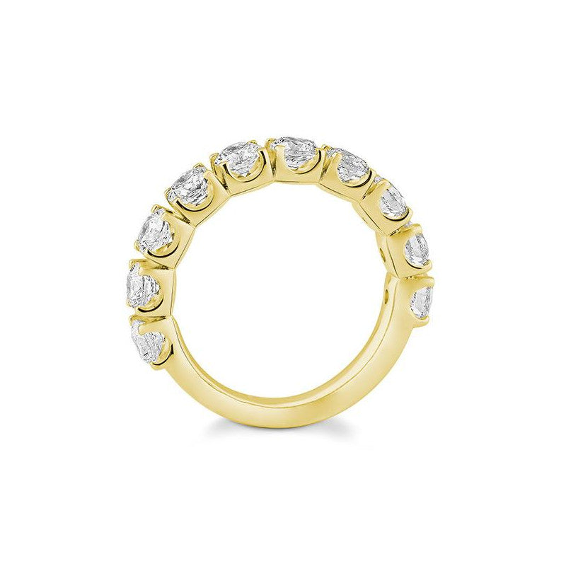 Der Halbmemoire Labordiamantring mit 2.25 Karat vereint zeitlose Eleganz und verantwortungsvollen Luxus. Dieser exklusive Ring ist mit neun funkelnden Labordiamanten im klassischen Brillantschliff besetzt, die ein intensives, gleichmäßiges Funkeln erzeugen. Die Diamanten sind in feinem Weiss (Top Wesselton) gehalten, zeichnen sich durch eine sehr gute Schliffqualität aus und verfügen über eine Reinheit von VS, was für höchste Brillanz und Qualität spricht. Der Ring wird aus hochwertigem 14 Karat (585) oder 18 Karat (750) Gold gefertigt und ist in den edlen Farben Weissgold, Gelbgold oder Roségold erhältlich. Mit einer Breite von ca. 4.20 mm und einer Höhe von rund 3.40 mm liegt dieser Labordiamantring perfekt am Finger und wirkt dennoch elegant und präsent. Durch die Verwendung von Labordiamanten bietet dieser Ring eine ethisch verantwortungsvolle Alternative zu natürlichen Diamanten, ohne Abstriche bei Qualität und Ästhetik. Die Lieferzeit beträgt ca. 1 Woche.