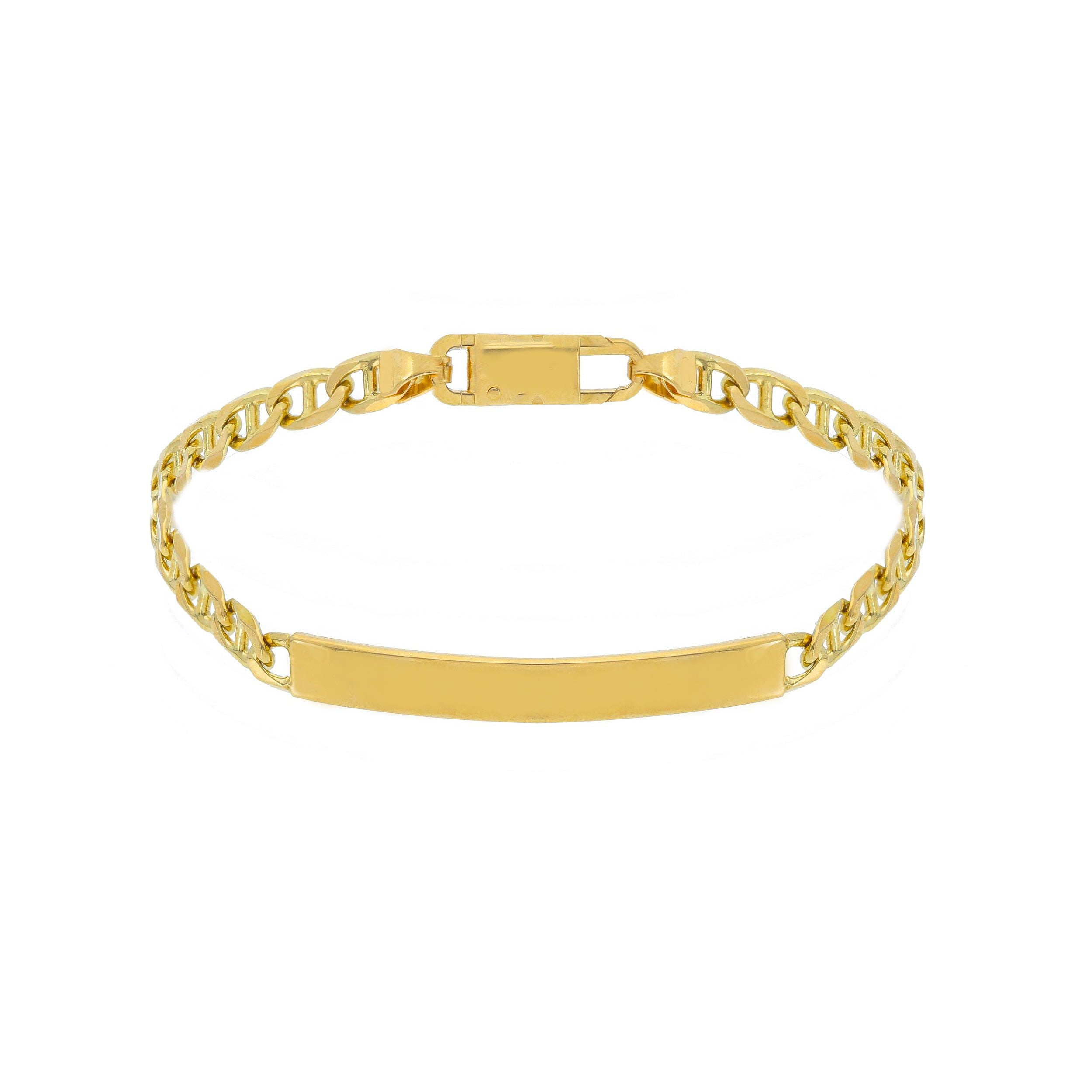 Verleihen Sie Ihrem Stil mit diesem eleganten Herren-ID-Armband aus 18 Karat Gold (750) eine persönliche Note. Das Armband besticht durch seine edle Gravurplatte, die sich ideal für eine individuelle Gravur eignet – perfekt, um ein bedeutungsvolles Datum oder eine persönliche Botschaft zu verewigen. Mit einem Gewicht von ca. 11,00 Gramm (abhängig von der gewählten Länge) und einer Länge von 19–21 cm bietet dieses Goldarmband einen angenehmen Tragekomfort und passt sich perfekt an das Handgelenk an. Ein Echtheitszertifikat garantiert die hohe Qualität des verwendeten Materials. Ob als besonderes Geschenk oder stilvolles Accessoire für den Alltag – dieses ID-Armband aus 18 Karat Gold steht für zeitlose Eleganz und exzellente Handwerkskunst. Die Lieferung erfolgt innerhalb von ca. 1 Woche.