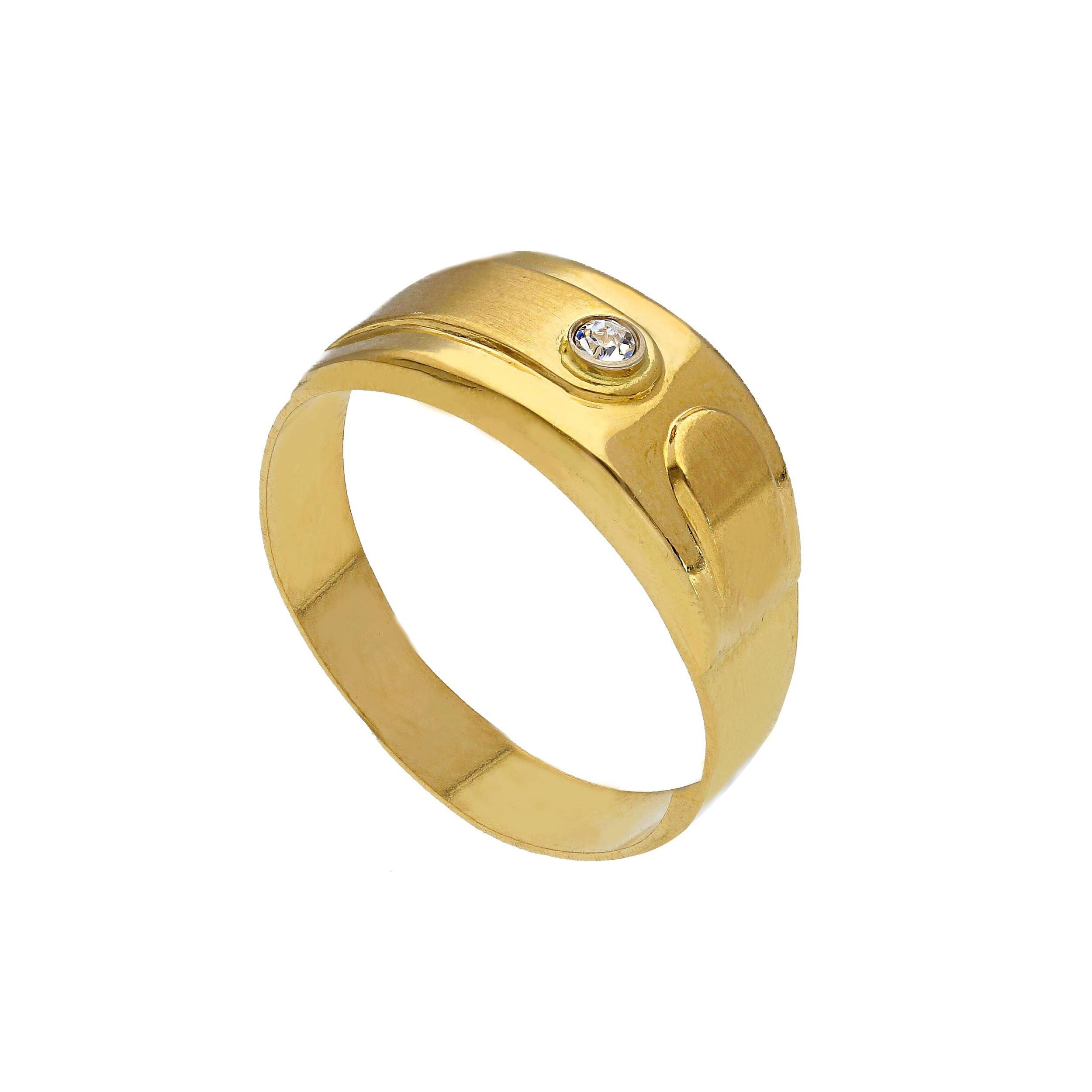 Dieser elegante Herrenring aus 18 Karat Gold (750er) verbindet zeitlose Form mit glaenzender Raffinesse. Er ist wahlweise in Gelbgold oder Weissgold erhältlich und mit einem edel funkelnden Zirkonia-Stein versehen. Mit einem Gewicht von ca. 4.20 Gramm (je nach Ringgroesse leicht abweichend) ist er angenehm zu tragen und dabei ein echter Blickfang.