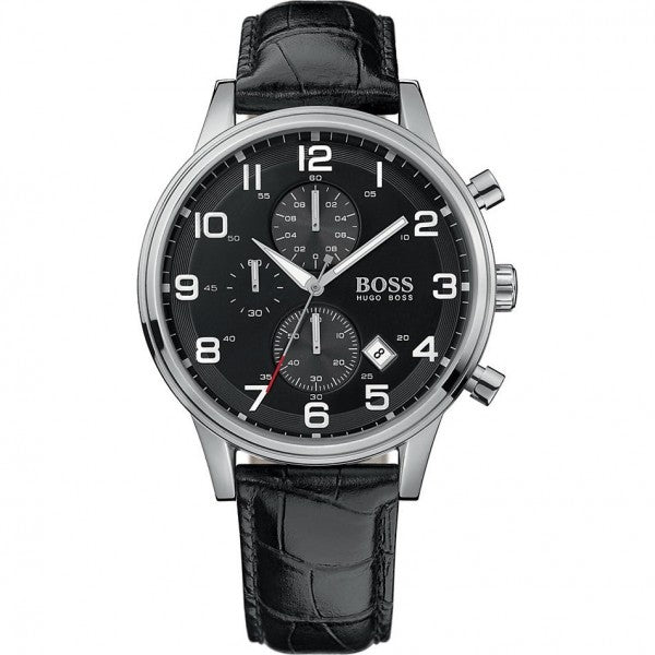 Das schwarze Zifferblatt sorgt für einen eleganten Look und ist mit einem robusten Mineralglas geschützt. Das schwarze Lederarmband mit Dornschliesse garantiert hohen Tragekomfort und einen sicheren Sitz.
