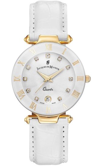 Die Jacques du Manoir Damen-Armbanduhr RC.72 steht für elegante Schweizer Uhrmacherkunst und zeitlosen Stil.