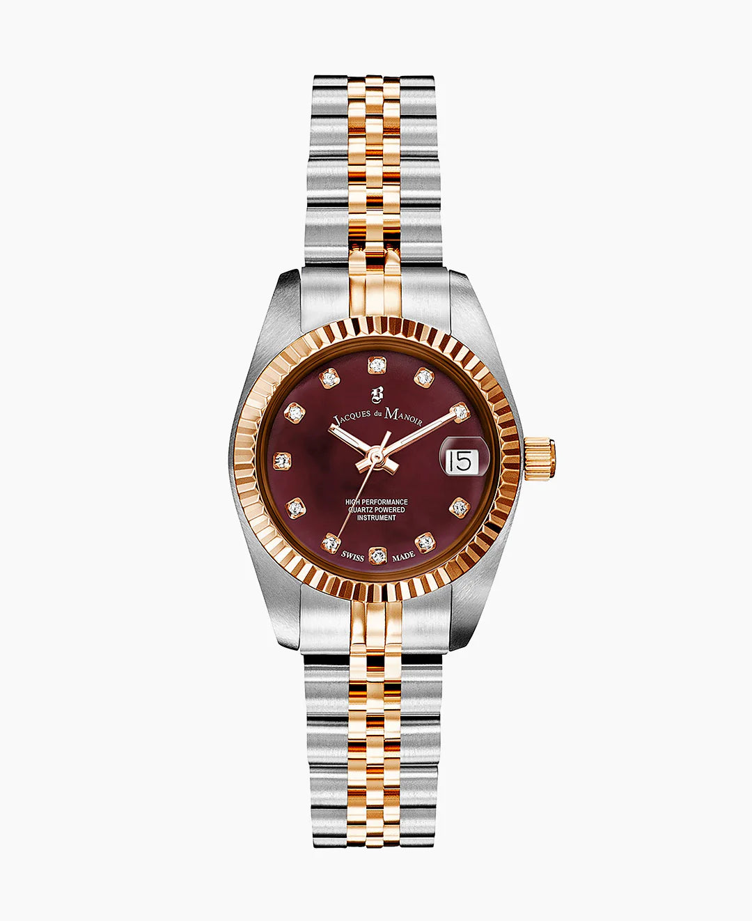 Die INSPIRATION für die moderne Frau von heute ist erfrischend anders. Schimmerndes Metall in einem Feuerwerk außergewöhnlicher Kombinationen ist der Mittelpunkt dieser faszinierenden Damenuhr aus der aktuellen JACQUES DU MANOIR Kollektion. Aus der Ferne könnte man die analoge Metalluhr fast für ein Unisex-Modell halten. Bei näherer Betrachtung offenbart sich jedoch der zauberhafte weibliche Charme der Details im INSPIRATION-Design. Diese Uhr wird stets die Aufmerksamkeit auf sich ziehen und Ihr Outfit perfekt hervorheben.