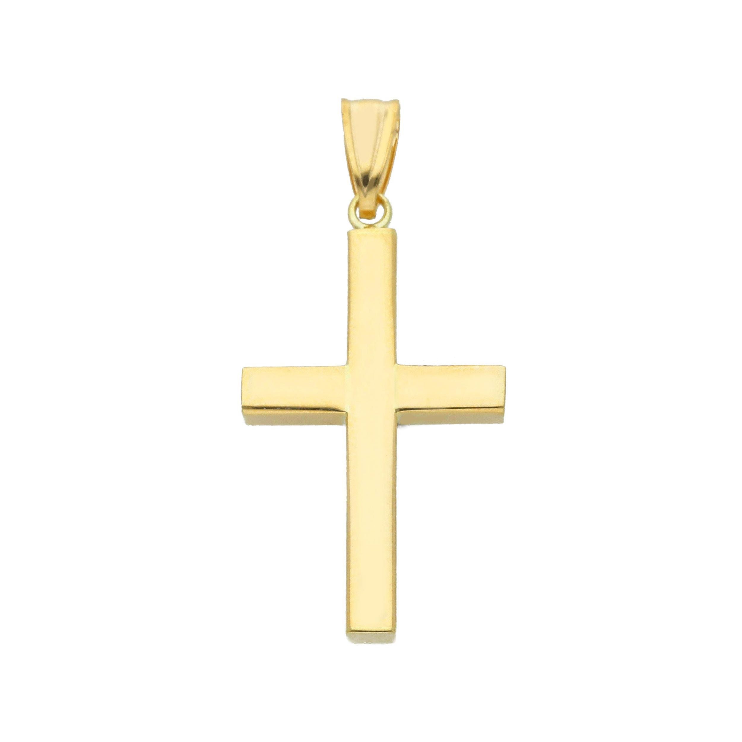 Dieser Kreuzanhänger aus 18 Karat Gelbgold vereint stilvolle Eleganz mit einem klassischen Design. Mit einer Länge von ca. 3,30 cm und einer Breite von ca. 1,70 cm ist er ein perfektes Schmuckstück für jede Gelegenheit. Das hochwertige 18 Karat Gold sorgt für einen warmen, edlen Glanz, der diesem Anhänger eine zeitlose Schönheit verleiht.