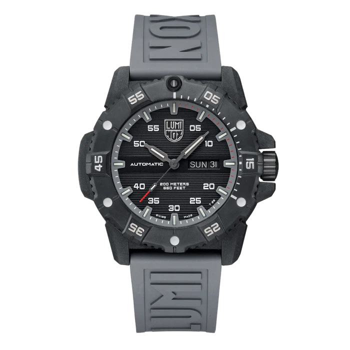 Die Master Carbon SEAL Automatic vereint alle Details, für die Luminox berühmt ist - Langlebigkeit, Leuchtkraft, Wasserdichtigkeit, Ablesbarkeit - mit einem Automatikwerk, das auch über ein Tages- und Datumsfenster verfügt. Das 45-mm-Gehäuse besteht aus einem bahnbrechenden Material, CARBONOX™+, das leicht, langlebig, hypoallergen, wetterfest, stoss- und kratzfest ist.