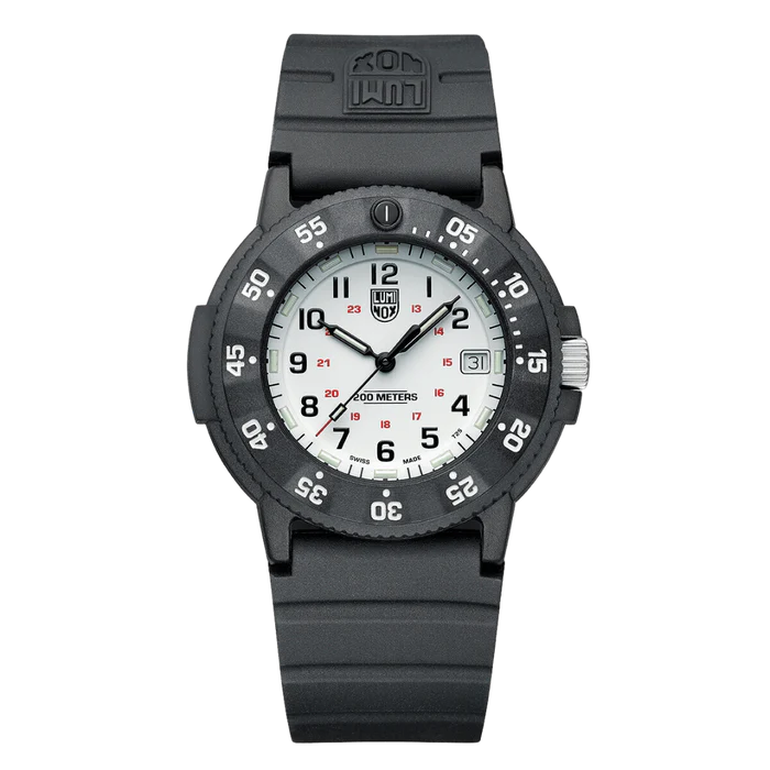 Die Luminox 3000 EVO Serie ist eine Hommage an die Uhr, mit der alles begann, die Original Navy SEAL 3001, die offiziell von der US Navy lizenziert und mit deren Genehmigung und Zustimmung hergestellt wurde. Wasserdicht bis 200 Meter und angetrieben von einem ausgeklügelten und extrem präzisen Swiss Made-Quarzwerk, setzt diese Uhr den Trend zu langlebigen und robusten Uhren für Militär und First Responder fort. Die Leuchtröhren befinden sich auf jeder der Stundenmarkierungen sowie bei 12 Uhr auf der einseitig drehbaren Lünette, so dass Sie die Zeit immer ablesen können, egal unter welchen Bedingungen.