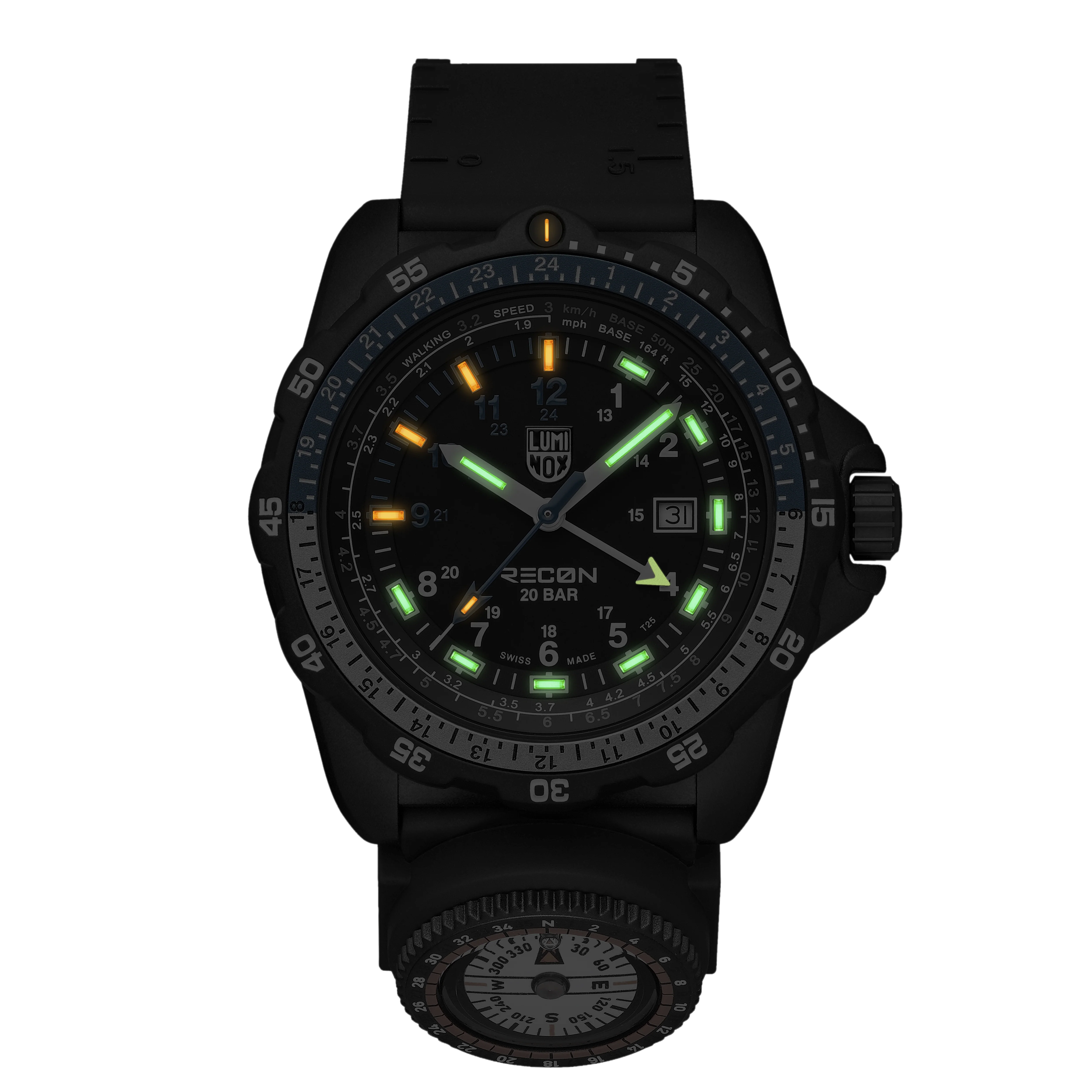 Die Luminox Light Technology (LLT) garantiert permanente Sichtbarkeit – bis zu 25 Jahre lang, selbst bei völliger Dunkelheit. Ergänzt wird dies durch kratzfestes Saphirglas und eine Wasserdichtigkeit von 200 m, wodurch die Uhr für extreme Bedingungen bestens geeignet ist.