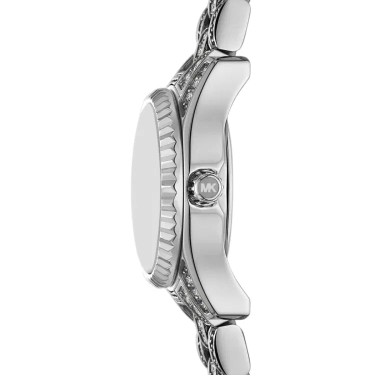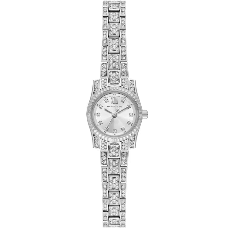 Diese Michael Kors Lexington Damenuhr kombiniert filigrane Eleganz mit hochwertiger Verarbeitung – perfekt für alle, die dezente, aber stilvolle Accessoires bevorzugen. Das durchgehend silberfarbene Design aus Edelstahl verleiht der Uhr eine klassische Note, während funkelnde Swarovski-/Zirkonia-Kristalle auf dem Zifferblatt für eine subtile, feminine Ausstrahlung sorgen.