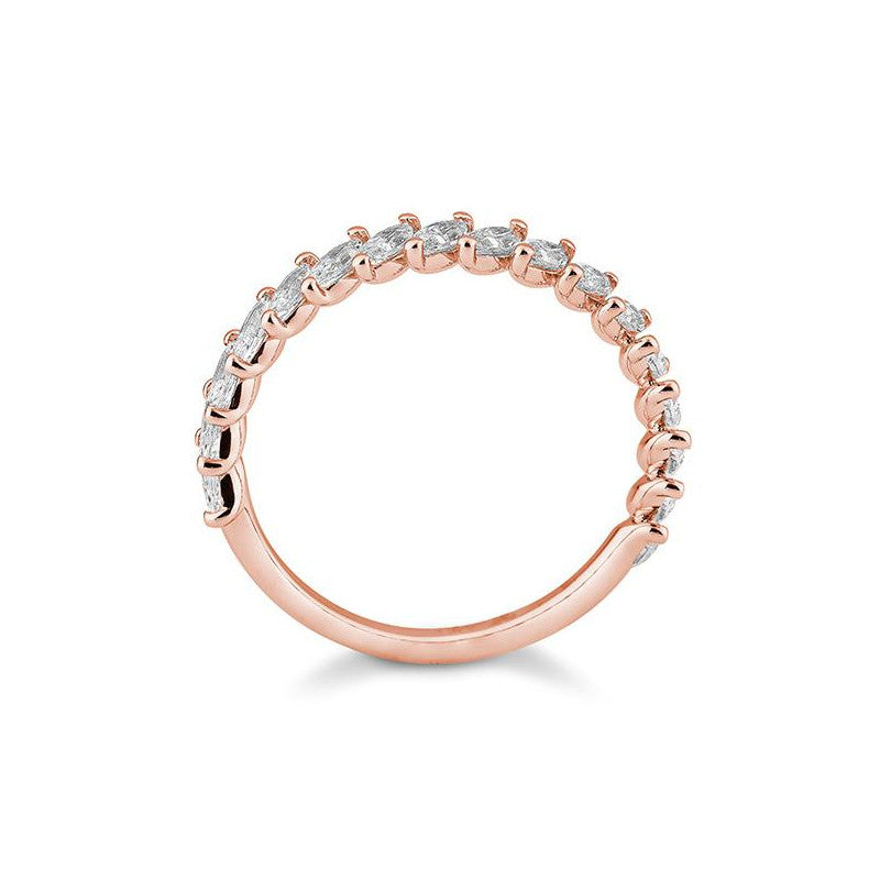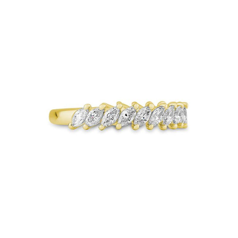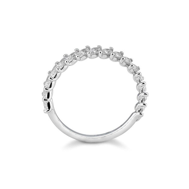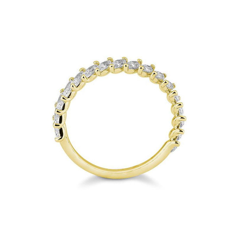 Der schmale Halbmemoire Labordiamantring mit 1.05 Karat vereint filigrane Eleganz mit nachhaltigem Luxus. Der Ring ist mit 15 funkelnden Labordiamanten im Brillantschliff ausgefasst, die für eine exzellente Brillanz sorgen. Diese Diamanten sind in feinem Weiss (Top Wesselton) gehalten, haben eine Reinheit von VS und bieten eine sehr gute Schliffqualität, was ihnen eine bemerkenswerte Leuchtkraft verleiht. Die Form des Rings ist Navette Lab Grown, was ihm eine elegante, zarte Erscheinung verleiht. Der Halbmemoire-Ring ist in 14 Karat (585) oder 18 Karat (750) Gold erhältlich, in den Farben Weissgold, Gelbgold oder Roségold. Mit einer Breite von ca. 4.10 mm und einer Höhe von ca. 2.40 mm liegt dieser Ring perfekt am Finger und sorgt für einen eleganten Auftritt. Labordiamanten bieten eine ethisch verantwortungsvolle Wahl, da sie ohne die negativen Auswirkungen des traditionellen Diamantenabbaus hergestellt werden. Die Lieferzeit beträgt ca. 1 Woche.