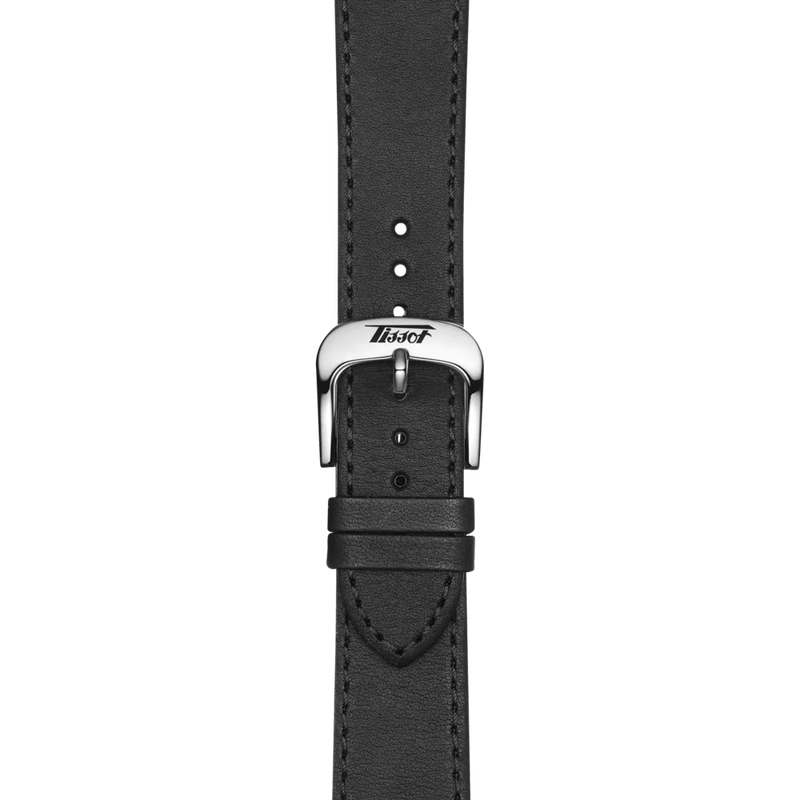 Angetrieben wird die Uhr vom robusten Swiss-Quartz-Kaliber ETA F06.111, ausgestattet mit der „EOL“-Funktion (End-of-Life) – ein praktischer Hinweis, wenn die Batterie bald getauscht werden muss. Das schwarze Kalbslederarmband mit Dornschließe sorgt für Komfort und einen klassischen Look. Wasserfest bis 30 Meter (3 ATM) – perfekt gegen Spritzwasser, Regen und den Alltag.