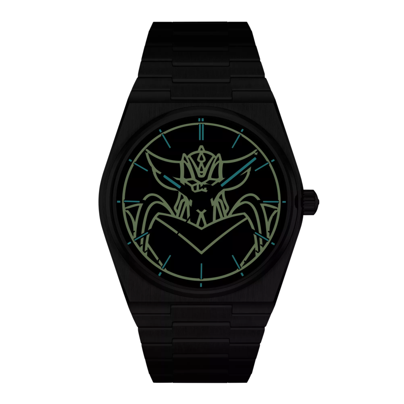 Dieser Zeitmesser verfügt über ein 40 mm-Gehäuse aus 316L-Edelstahl und ein Armband mit Schnellwechselsystem. Die mit Super-LumiNova® Leuchtbeschichtung versehene Silhouette der Figur Grendizer hebt sich vom tiefblauen Zifferblatt ab, während ein Sekundenzeiger im Harken-Stil und ein gravierter Rotor zu der besonderen Nostalgie beitragen, die alle Fans der Serie zu schätzen wissen werden.