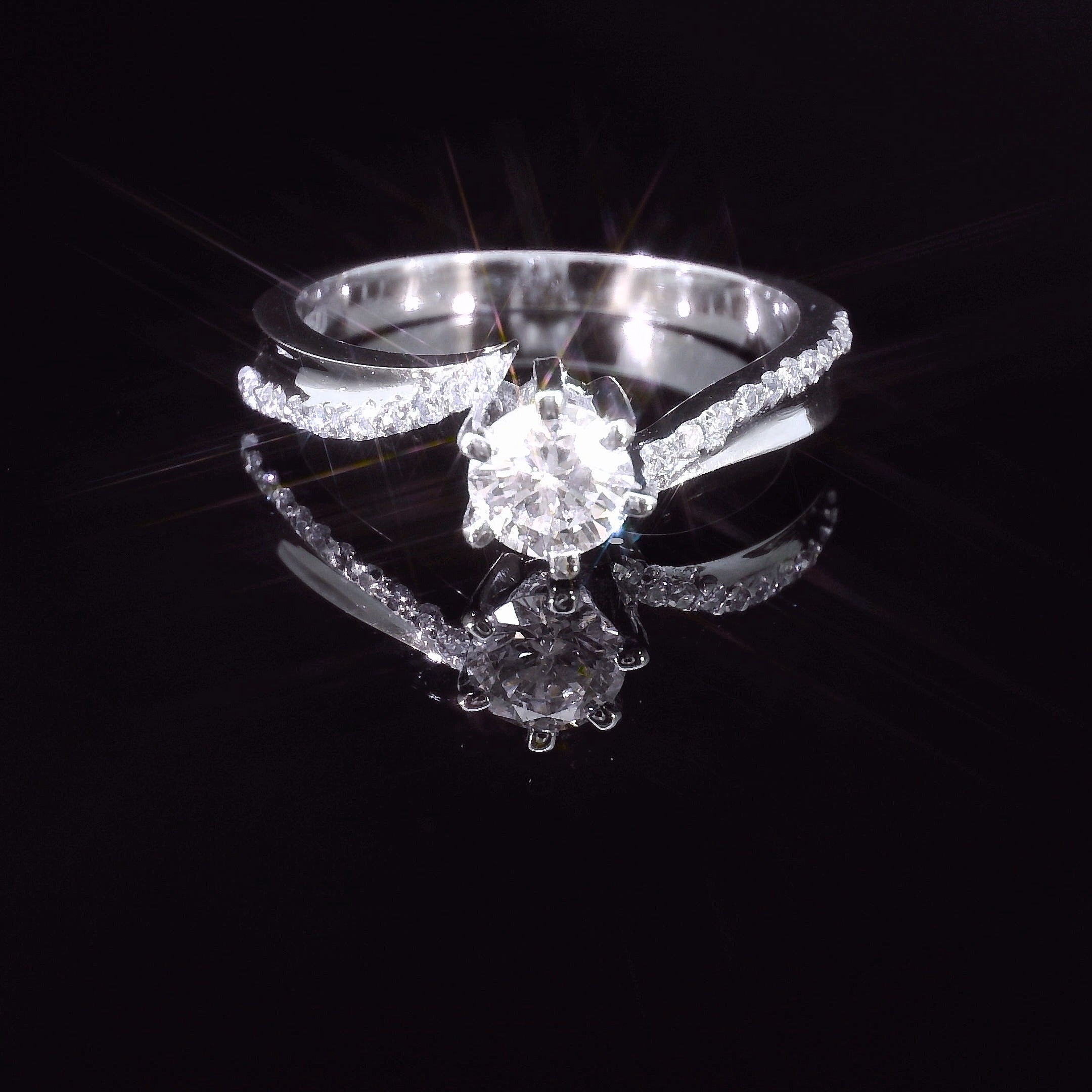 Weissgold-Ring mit Brillant 0.18ct & Diamanten – Grösse 55